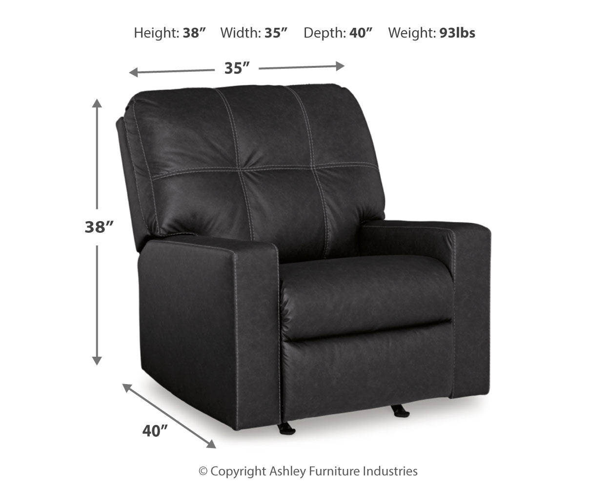 | Rocker Recliner | 35" | 40" | 38" |