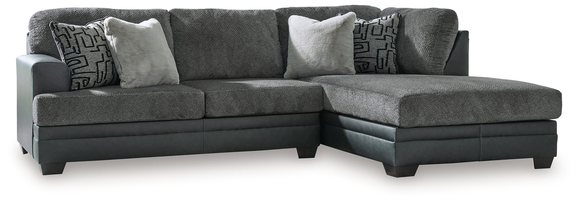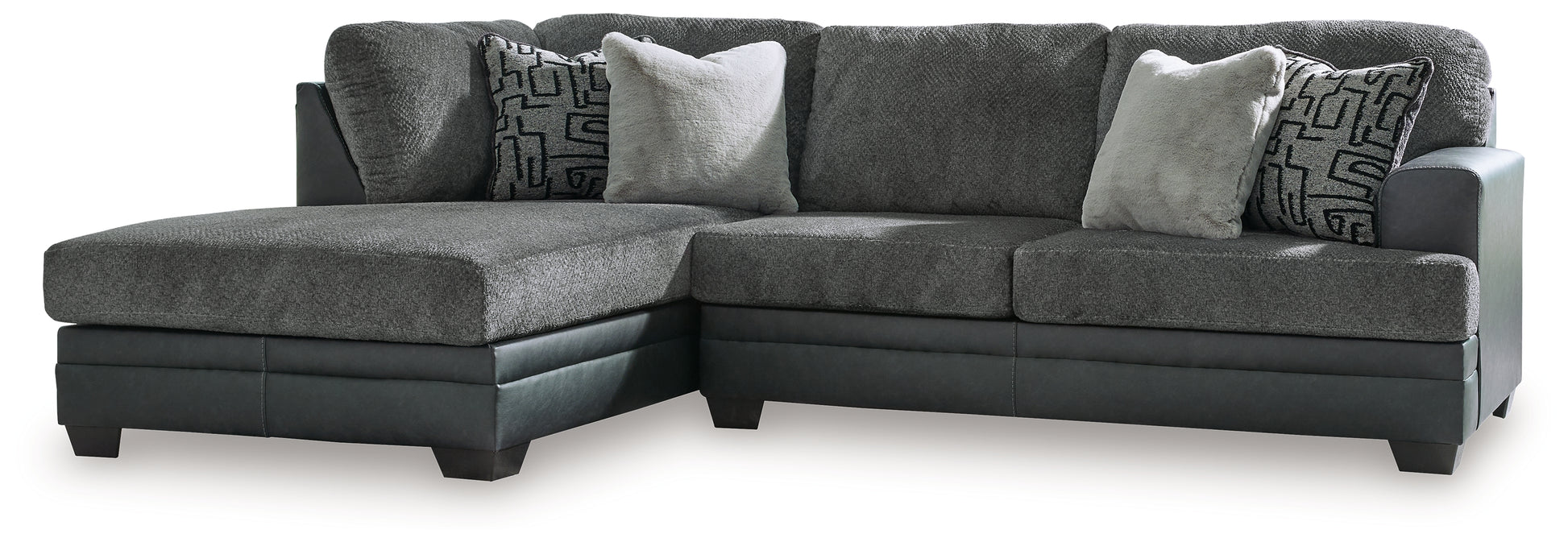 - Includes 2 pieces: left-arm facing corner chaise and right-arm facing sofa
