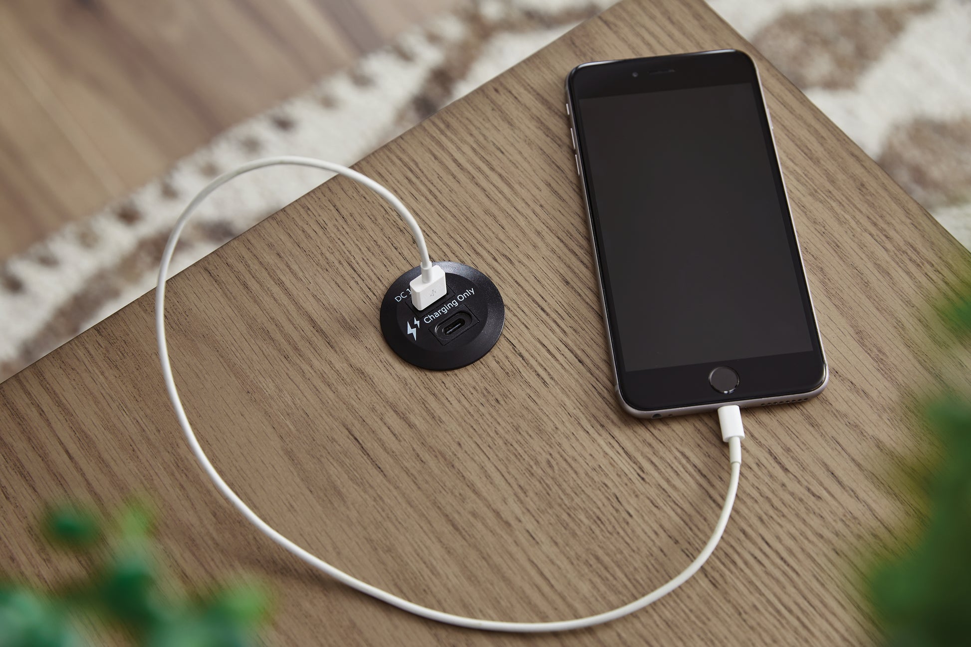 This chairside end table elevates your living room with both sleek style and must-have modern function. Reeded detailing lends a contemporary appeal, while subtly integrated drawers stow essentials with ease. USB ports round out the design, allowing you to keep devices within reach while charging.