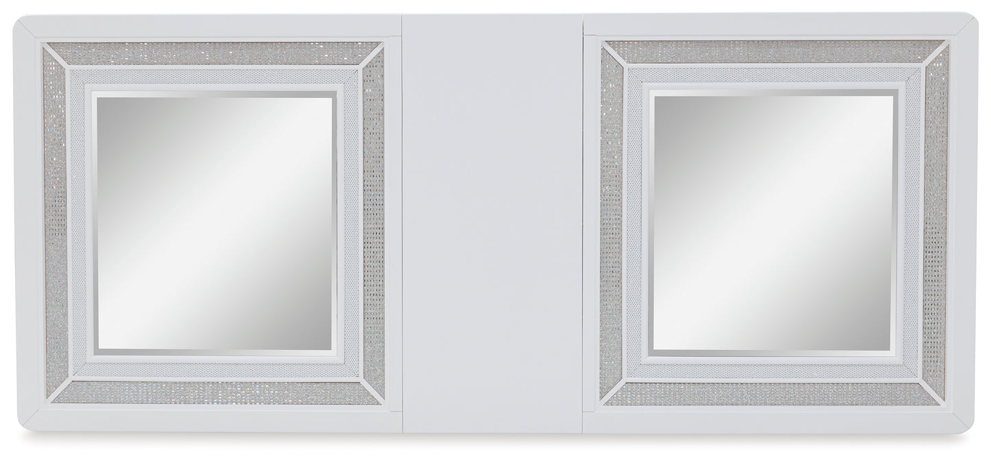 Embracing modern glamour, this dining chair set is a dazzling addition to your dining area. A bright white lacquer finish and a contemporary cutout design give it a look all its own. The sumptuous upholstery wows with metallic thread accents.