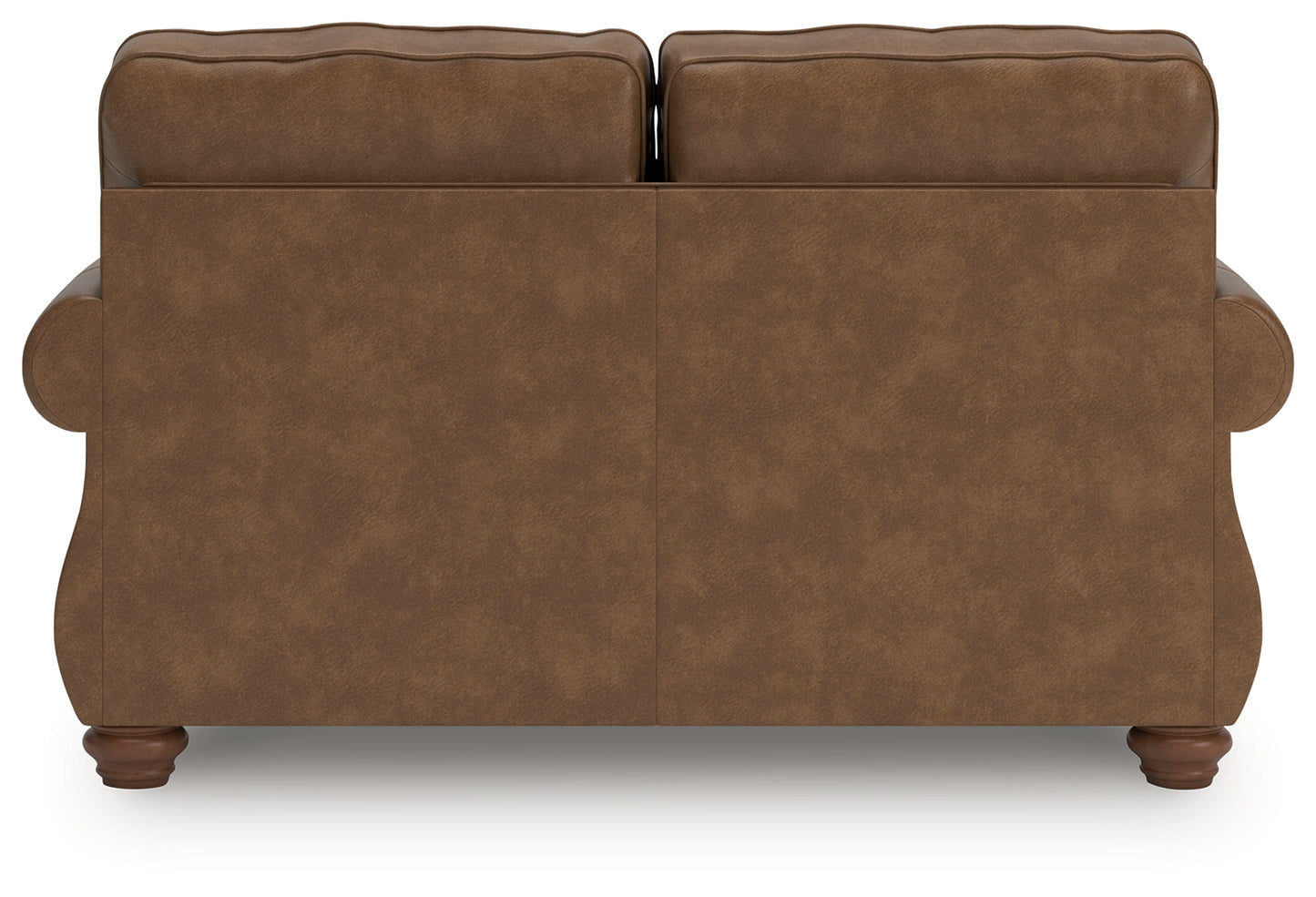 Everyone can have the best seat in the house with this loveseat. Its nailhead trim puts the finishing touches on the traditional roll arms you love. Comfy, durable cushions—wrapped in a rustic yet sophisticated faux leather—keep you feeling relaxed. Chenille pillows in a distressed motif pattern add another layer of comfort. And the loveseat's turned legs show that style and quality flow from top to bottom.