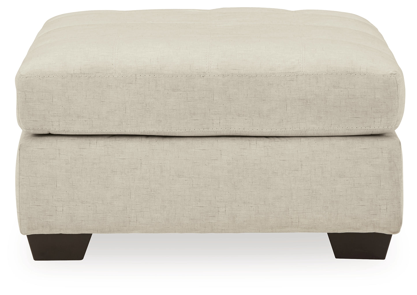 Destination: urban oasis. Elevate your design aesthetic with a chic look inspired by city living. Sleek, sultry and tailored to a T, this oversized accent ottoman lures with comfortably soft box cushions and dramatic jumbo stitching for fashion-forward flair. Wrapped in a parchment beige velvet-touch upholstery, the ottoman's blend of sophistication and kicked-back comfort appeals to a contemporary taste.