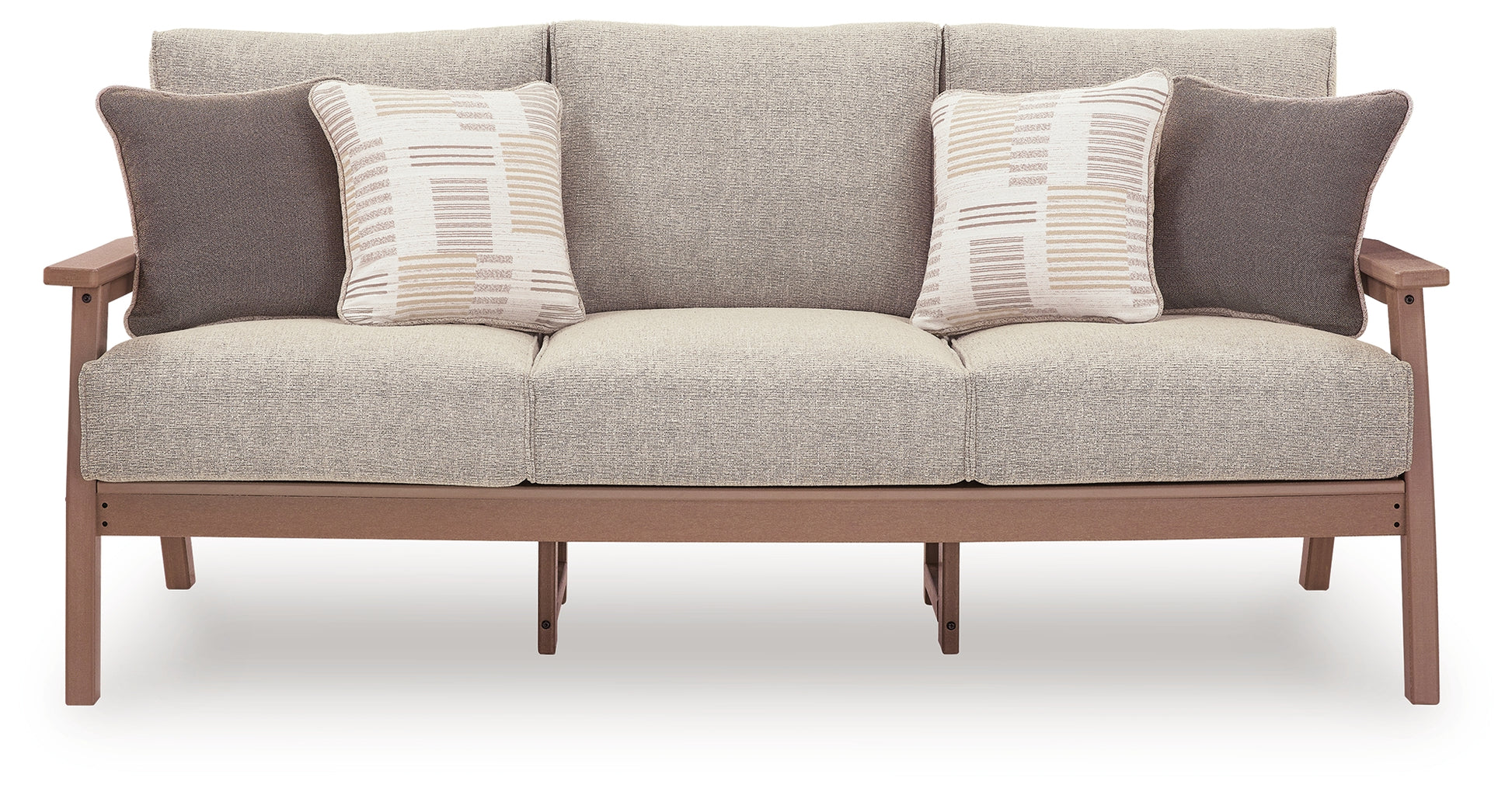Natural neutrals are all the rage. Embrace the style trend with this outdoor end table. Crafted with MEGA-TUFF™ HDPE material, it combines the exceptional durability and weather resistance you need with the wood look you love. Designed to shed rainwater, the table's slatted top and lower shelf are the perfect spots for alfresco essentials like drinks, books, or outdoor decor.