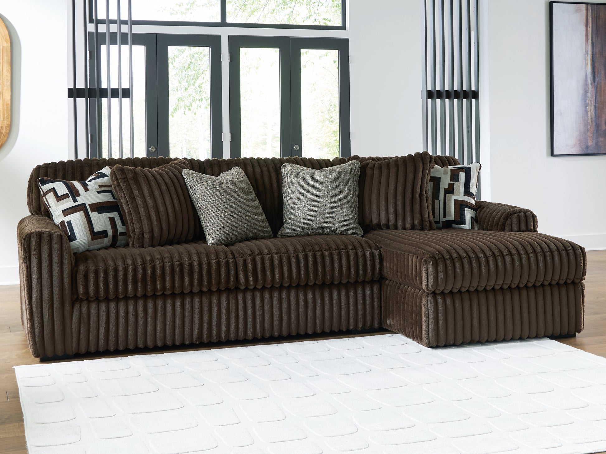 Wrapped in luxuriously soft jumbo corduroy, this sectional with chaise takes cozy and inviting to a higher level. The sumptuous piece is perfect for unwinding after a long day, with exceptionally textured cushions that deliver pure indulgence. Now all you have to do is kick back, sink in and relax.