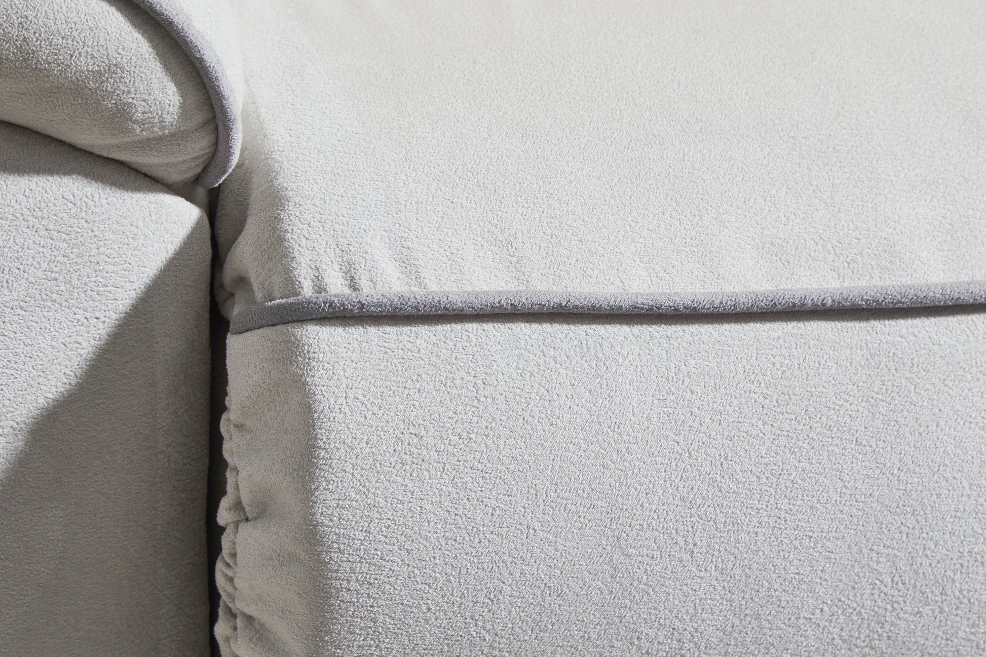 Smart, clean and ultra modern, this power reclining sectional is utterly in vogue. You'll love its indulgent cushions and contemporary bustle back styling. The sumptuous fabric, accentuated with contrasting welting, easily blends with your decor. A convenient console with storage and cup holders keeps essentials handy. And with reclining at the press of a button, this modular sectional proves chic design and superb comfort go hand in hand.