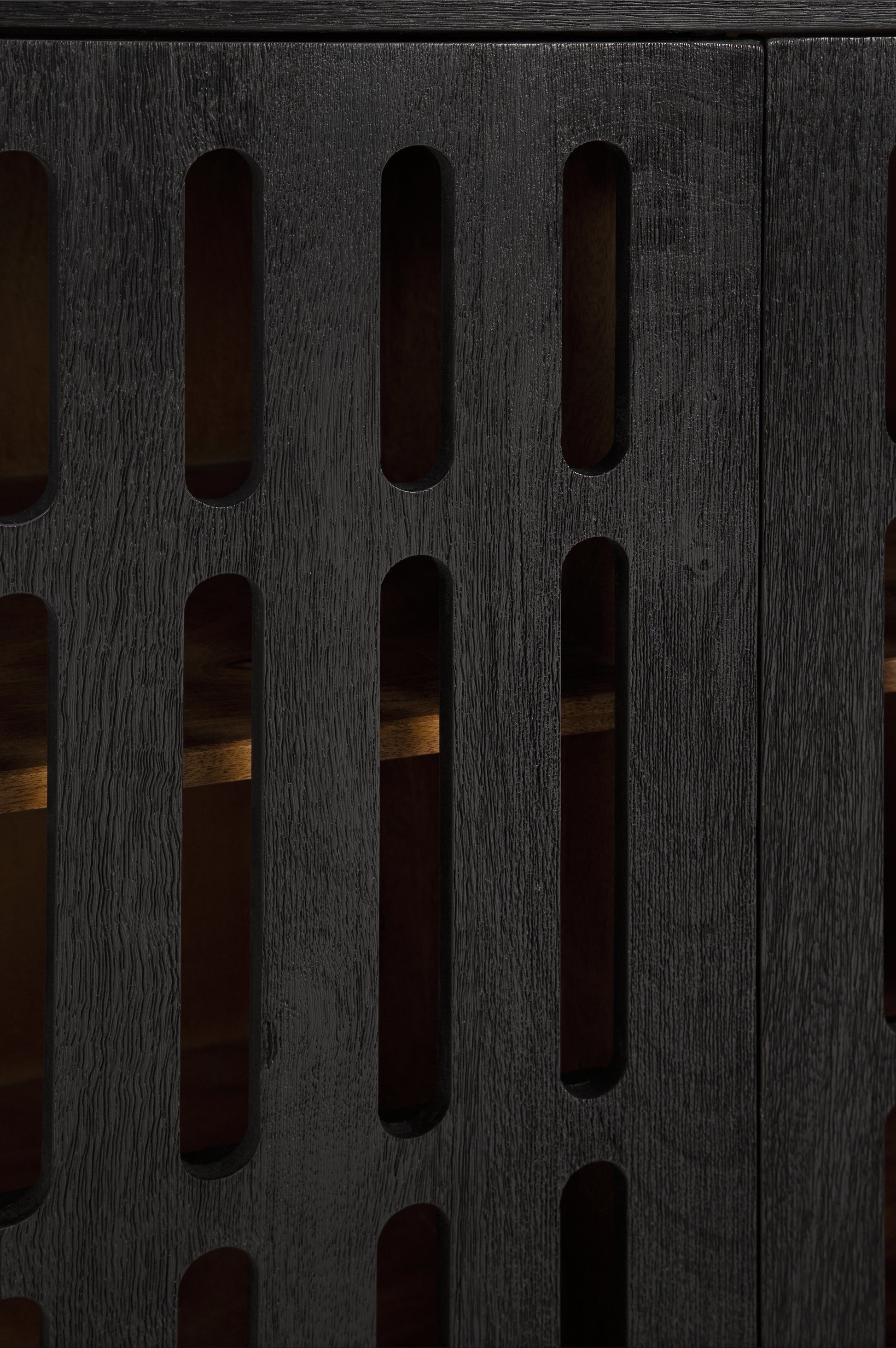 This accent cabinet showcases high-end style with a captivating design. A cleverly placed cutout offers a sneak peek inside, making it a versatile choice for use as a buffet, console or media cabinet. Contemporary and casual, this piece epitomizes laid-back luxury.